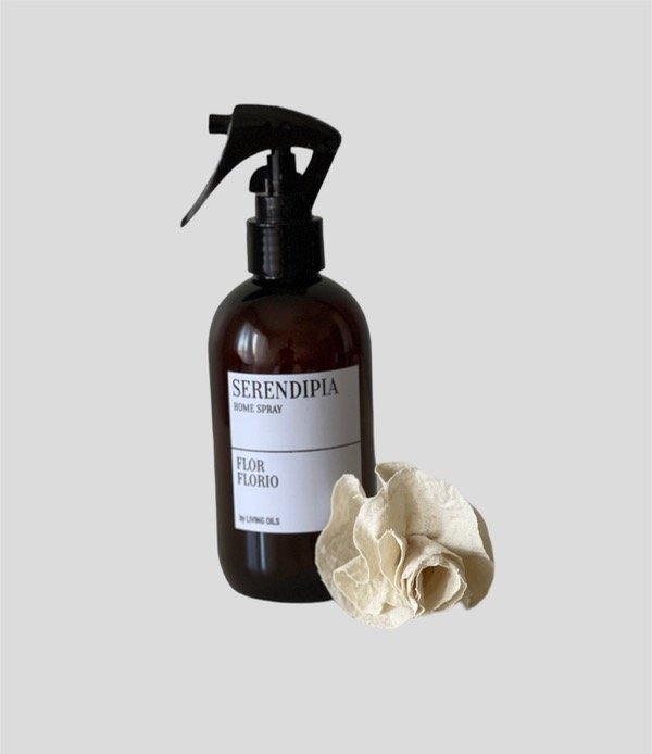 1 Home Spray Serendipia y una flor de tela perfumada. Envase PET ámbar con válvula atomizadora. 250 ml. Apto TEXTIL